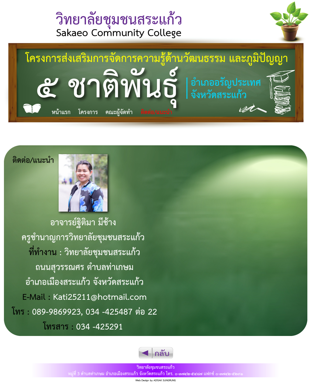 ชื่อ เบอร์โทร E-Mail ข้อเสนอแนะ